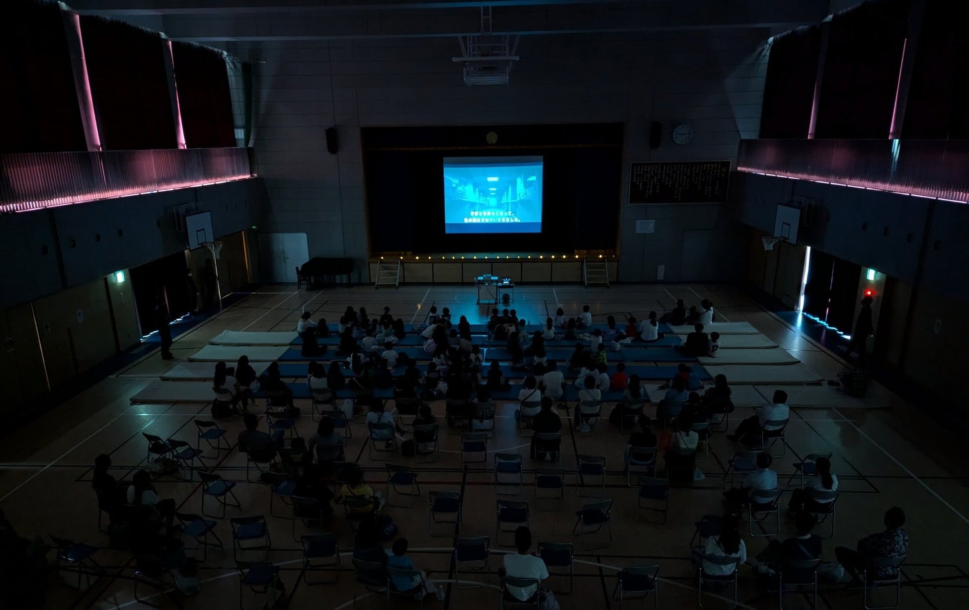 登壇したのは27歳の新鋭ホラー作家、中澤太翔(なかざわ たける)氏。彼の執筆したホラー小説を実力派声優のナレーションを入れて映像化し、体育館の大スクリーンで上映した。総勢数百人の小学生と保護者が参加した。上映中、子どもたちから悲鳴が上がる場面も……。