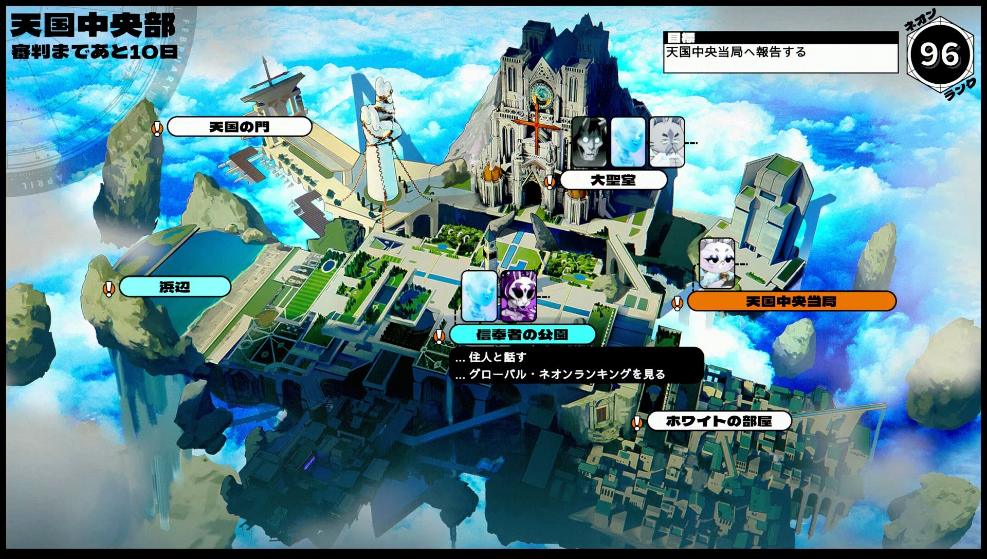 本作の主人公は、とある事故で命を落とし記憶を失くした罪人。天国に蔓延るデーモンの討伐のため地獄から引き上げられ、「ホワイト」として他のデーモンハンターと天国での永住権を賭けて競い合う。しかし、中には見覚えのあるハンターがいた…もしや、前世で彼らと関係があったのだろうか?