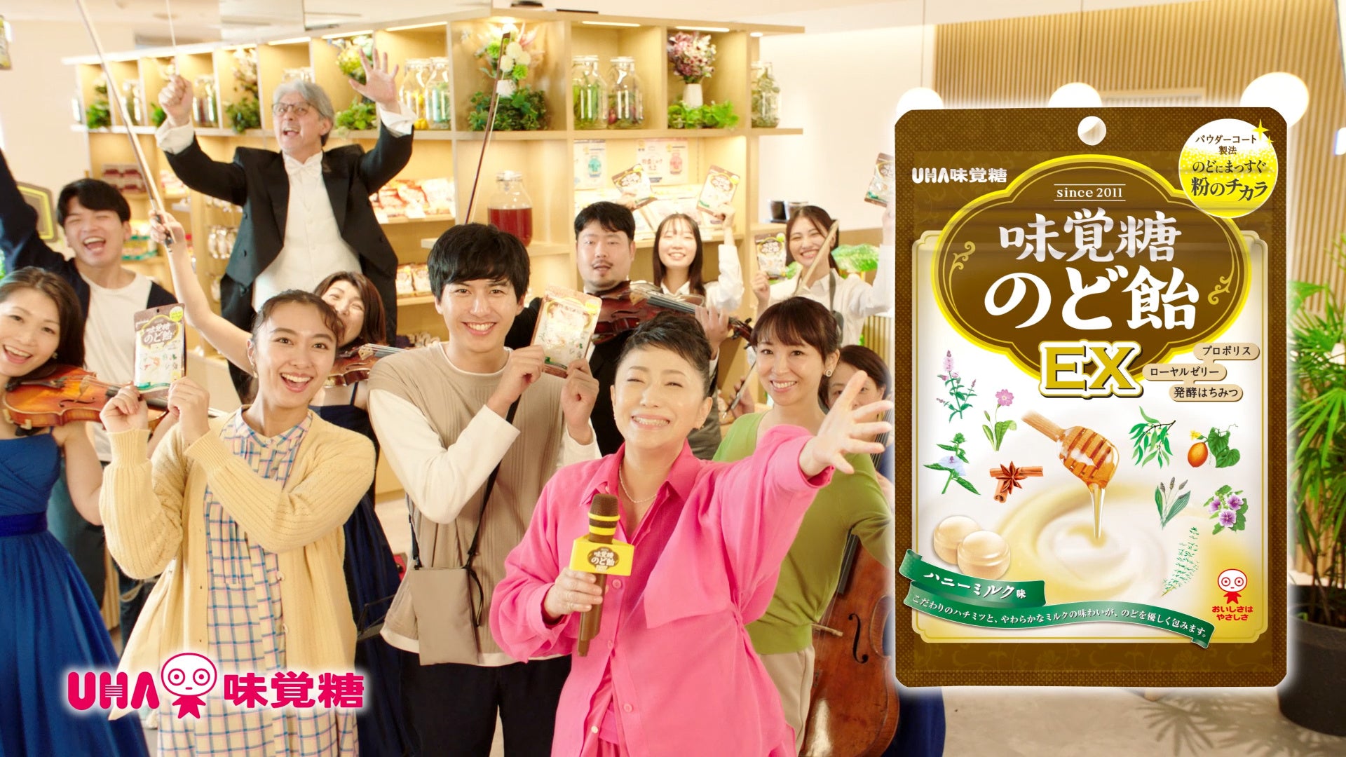 味覚糖のど飴󠄀のプロポリスやハーブの力をみなさんに届けるべく、石川さゆりさんがUHA味覚糖のUHA PARK&CAFEを探訪!訪れているお客さんに味覚糖のど飴󠄀を食べてもらいながら、その本格さやおいしさについて突撃インタビュー。レポーター役と思いきや、最後にはなぜか指揮者と弦楽四重奏が登場。お客さんを巻き込んで「味覚糖のど飴󠄀~♪」と歌う展開も。普段なかなかみることのできないレポーター役の石川さんが見どころです。