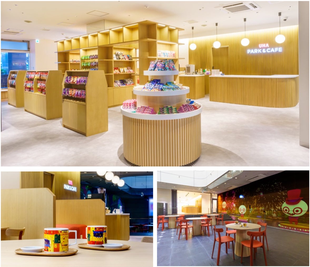 「UHA PARK&CAFE」は、木のぬくもりとプロジェクションマッピングに彩られた遊び心溢れるカフェ。UHA味覚糖が創業から75年大事にしてきた『やさしさ』『あたらしさ』『ときめき』、それらを商品やカフェ、プロジェクションマッピングなどを通して感じていただける遊び心溢れる空間となっています。UHA味覚糖の社員が働くオフィスでありながらも、どなたでもご利用いただけるカフェとなっています