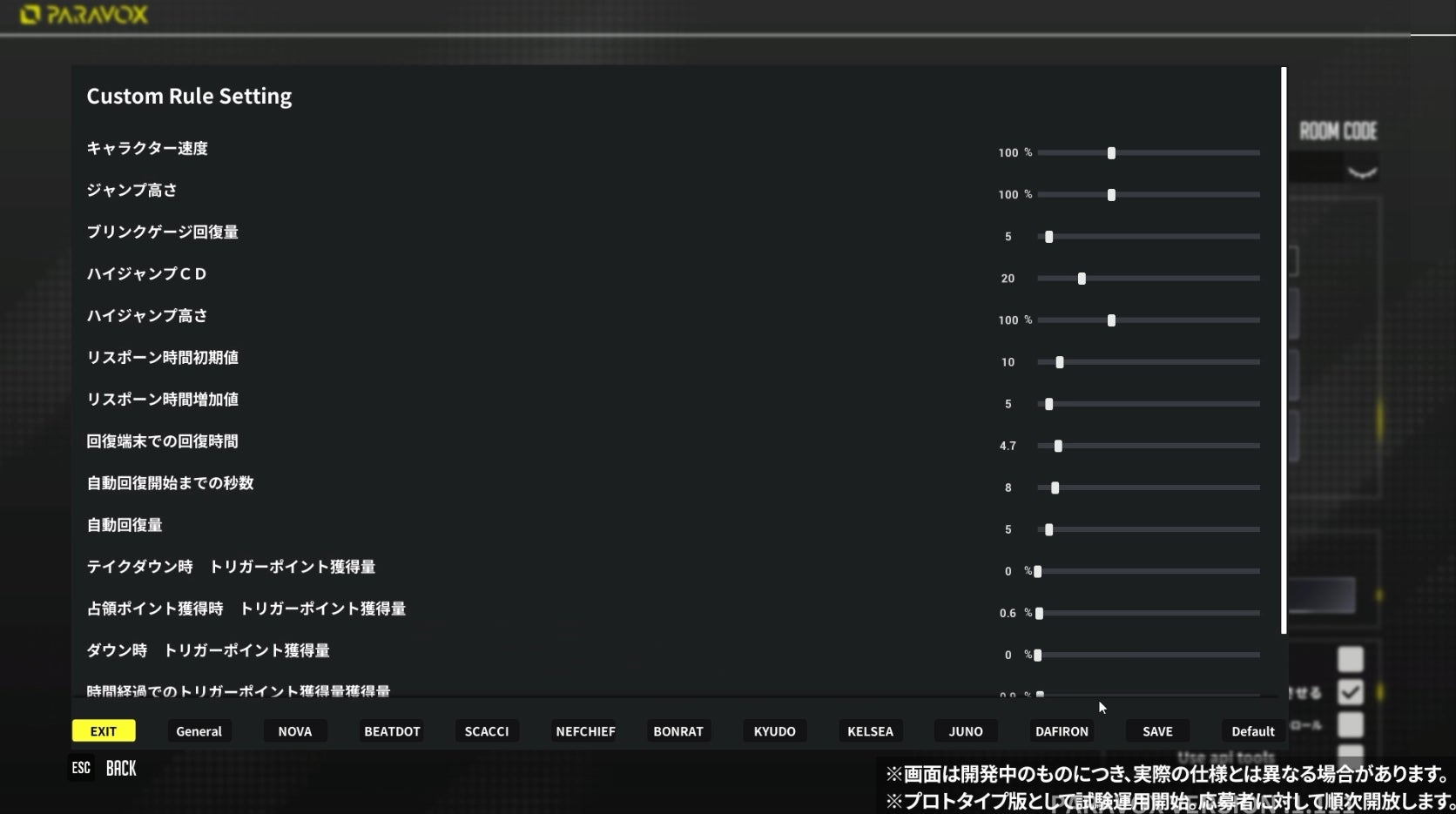 試合ルール: リスポーン時間、トリガーゲージ獲得量など