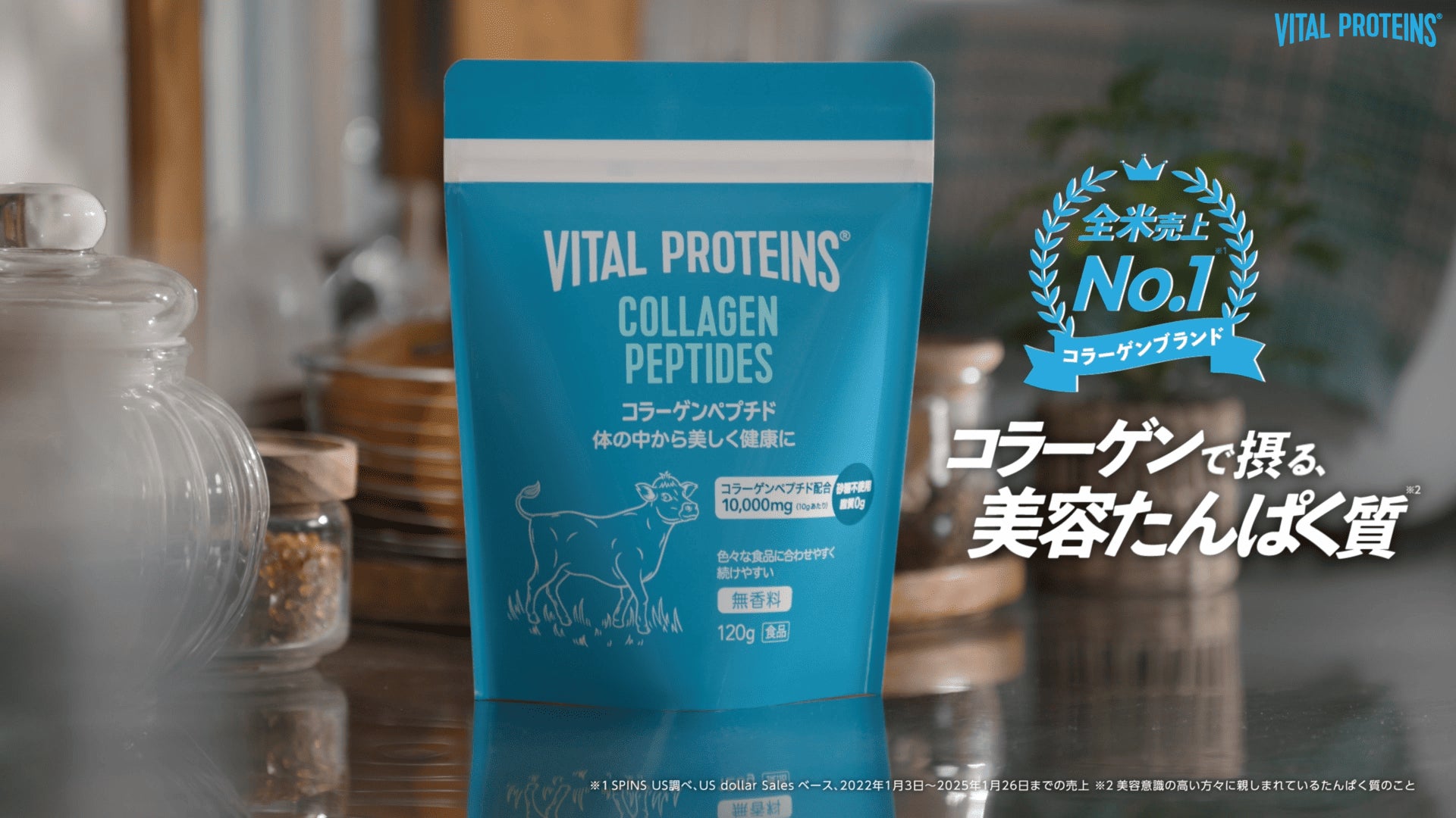 また、佐々木さんが出演する新たなブランドムービー「希(のぞみ)の望み」篇を制作しました。本ムービーでは、「バイタルプロテインズ」を日常に取り入れることで、前向きに自分らしく過ごす女性の姿を、佐々木さんの柔らかな笑顔とともに描いています。ムービー内では、“キレイもこころも、内側から整える”というブランドメッセージのもと、無香料で飲み物や食事の風味を損なわない特長や、1日1回の手軽な習慣として続けやすい点が、ナチュラルなライフスタイルの中で表現されています。ヨーグルトやコーヒーにさっと溶かして取り入れる様子や、鏡に映る自分を見つめるシーンを通じて、“わたし”に向けた前向きな投資としてのコラーゲン習慣を提案しています。