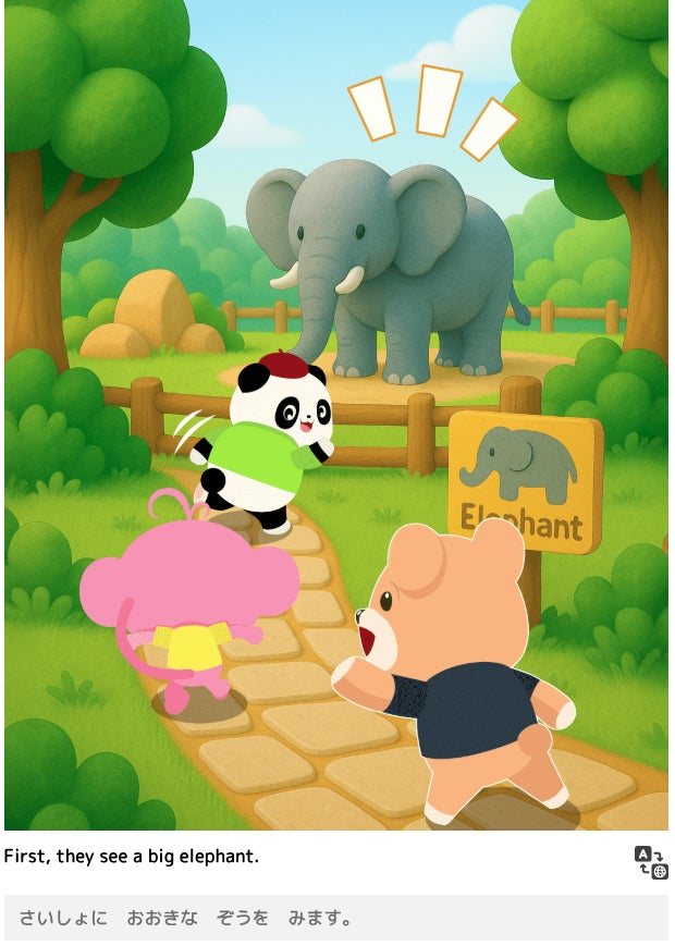 これまで公開していたチャプターは【中級】として引き続きご利用いただけます。また、今後は続編ストーリーの公開も予定しており、お子さまが継続的に楽しみながら学べる教材展開を進めてまいります。