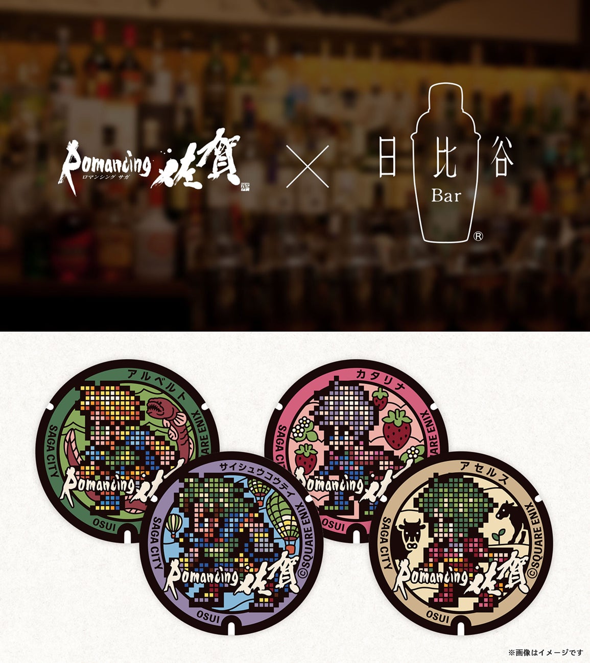 「ロマンシング佐賀 TOKYO」のイベント開催に合わせて、日比谷Barとのコラボレーションを実施いたします。佐賀県産の食材を使用した全6品のカクテル&フードメニューをお楽しみいただけます。メニューを注文いただいた方には、マンホールコースターを贈呈いたします。