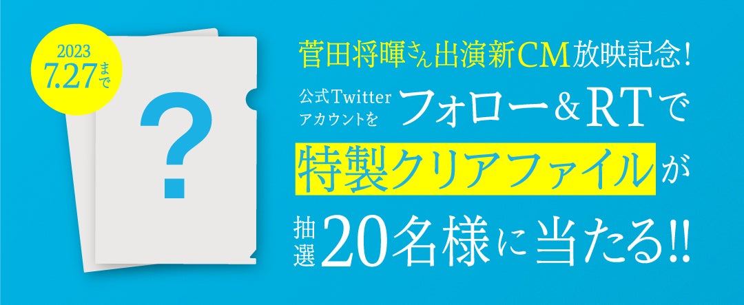 今回の大型プロモーション実施に合わせ、期間限定の特別キャンペーンを実施。『エン転職』公式Twitterアカウントのフォロー&キャンペーン告知ツイートのRTで、20名様(抽選)に菅田将暉さんの特製クリアファイルをプレゼントいたします。奮ってご応募ください。